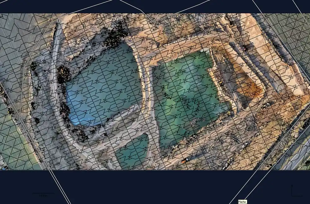 Der Betreiber einer aktiven Sandgrube in Nordhessen benötigte eine präzise Ermittlung des bereits entnommenen Aushubvolumens. Zusätzlich sollte der aktuelle Zustand der Grube mit allen Maßen, Flächen und Höhenprofilen digital archiviert werden – als verlässliche Grundlage für die weitere Planung und behördliche Dokumentation.